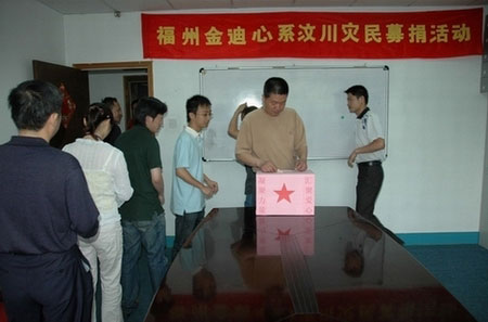 據(jù)民政部報(bào)告,截至3日12時(shí),四川汶川地震已造成69107人遇難,373577人受傷,失蹤18230人,累計(jì)受災(zāi)人數(shù)4569.2965萬(wàn)人。 金迪人感同身受,一起決定進(jìn)行募捐活動(dòng),貢獻(xiàn)自己的力量,相信中國(guó)和中華民族一定自強(qiáng)不息,任何災(zāi)害都難不倒中國(guó)人民! 我們的唐總率先捐款,做出了最好的榜樣! 大家踴躍捐款!爭(zhēng)先為抗災(zāi)貢獻(xiàn)出自己的力量! 無(wú)論捐多捐少,我們的心與災(zāi)區(qū)人民同在! 金迪人在行動(dòng)!